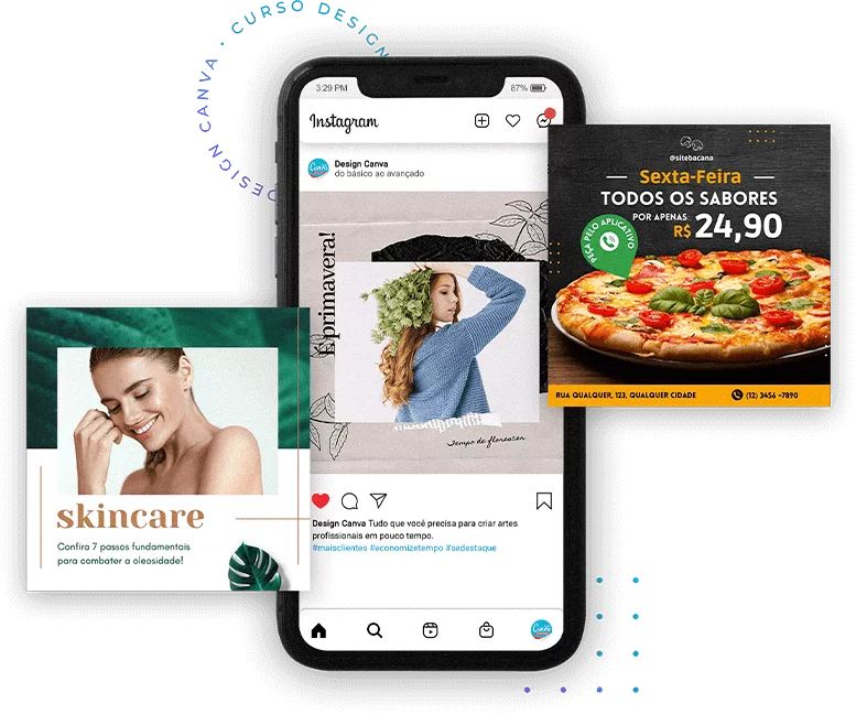 Faça artes profissionais para seu feed, stories, mockups para sua marca, anúncios para Facebook, Instagram e Google. Aprenda também como fazer cardápio para seu restaurante, banners, flyers, capa para canais do Youtube e muito mais!